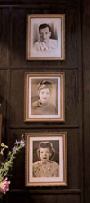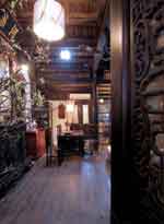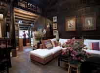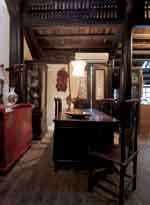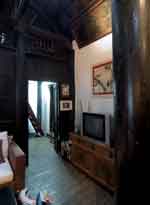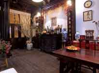![]() Ngôi nhà gỗ cổ kính nghe đâu có tuổi thọ hơn 100 năm được đóng tại Huế và chuyển ra Hà Nội. Ta còn cảm được cái không khí phong lưu cổ kính của căn nhà thuở trước - Phòng khách được hợp nhất bởi hai gian nhà cổ. Vì ngôi nhà cũng là nơi thờ tự nên bàn thờ tổ được chăm chút trang trọng ![]() Chân dung ông Hà Quang Định và hai người vợ lúc sinh thời